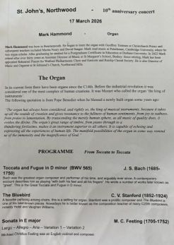 Organ Recital at St John's Church in Northwood March 17th 2026 (Programme)