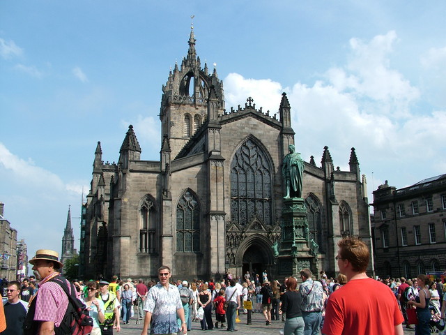 Good Friday saw a ten-hour coach trip to Edinburgh followed by a concert at Dunfermline Abbey the following day. I remained in London to play for the Easter services at St Edmund's. My trip to Edinburgh did not start too well as my flight on Easter Sunday was over two hours late. I was due at a reception in the Castle that evening and had to go straight there from the Airport - luggage and all - in order to make it on time! The weather was not kind to us as it rained constantly for the best part of two days and our accommodation in the Youth Hostel could be generously described as functional - four men in a room the size of a broom cupboard! However the concert on Monday night in St Giles Cathedral was a great success and the Rieger organ was my favourite of the three which I played during the tour.