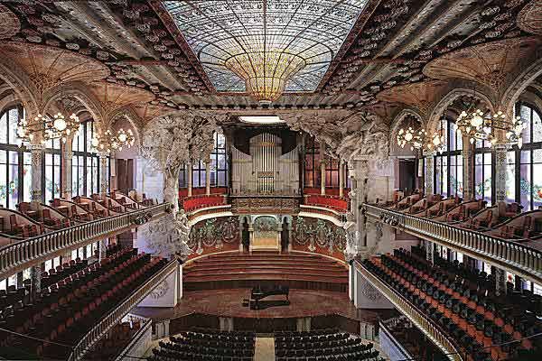 During the recent half-term holiday, Aline, Alex and I had an enjoyable five days in the Spanish city of Barcelona. One of the most impressive buildings was the concert hall of the Palau de la Musica. It was built by Lluis Domenech in the first decade of the twentieth century for the Catalan Choral Society and the opening season featured concerts by the Berlin Philharmonic Orchestra under Richard Strauss. The concert hall includes some impressive stained glass such as the skylight representing the sun which you can see in the above photo (for some excellent photos, click here). The hall also contains some fine sculptures and mosaic work. The organ was originally built by the German builders Walcker in 1908. It fell into disrepair in the 1970s and was only restored in 2003 following a generous bequest. One of the innovative features of the rebuild is the ability to play the instrument by remote control as was demonstrated by our tour guide. He told us that the best way to keep an instrument in optimum condition was to play it every day and this was now accomplished through a computerised console.